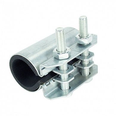 Хомут ремонтный (муфта) предназначен для устранения разгерметизации трубопроводов при появлении в них трещин, течей или свищей, при условии, если размер повреждения не превышает длины хомута минус 2 см. с каждого края и не более ⅔ по диаметру трубы.