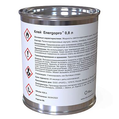 Клей Energopro® предназначен для склеивания между собой и приклеивания на металлические поверхности теплоизоляционных материалов из пенополиэтилена, пенополиолефинового пластомера и пенокаучука.