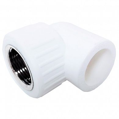 Двухсторонний комбинированный фитинг для соединения под углом 90° друг к другу полипропиленового трубопровода и компонента инженерной системы с резьбовым подключением. Резьба фитинга – внутренняя трубная.